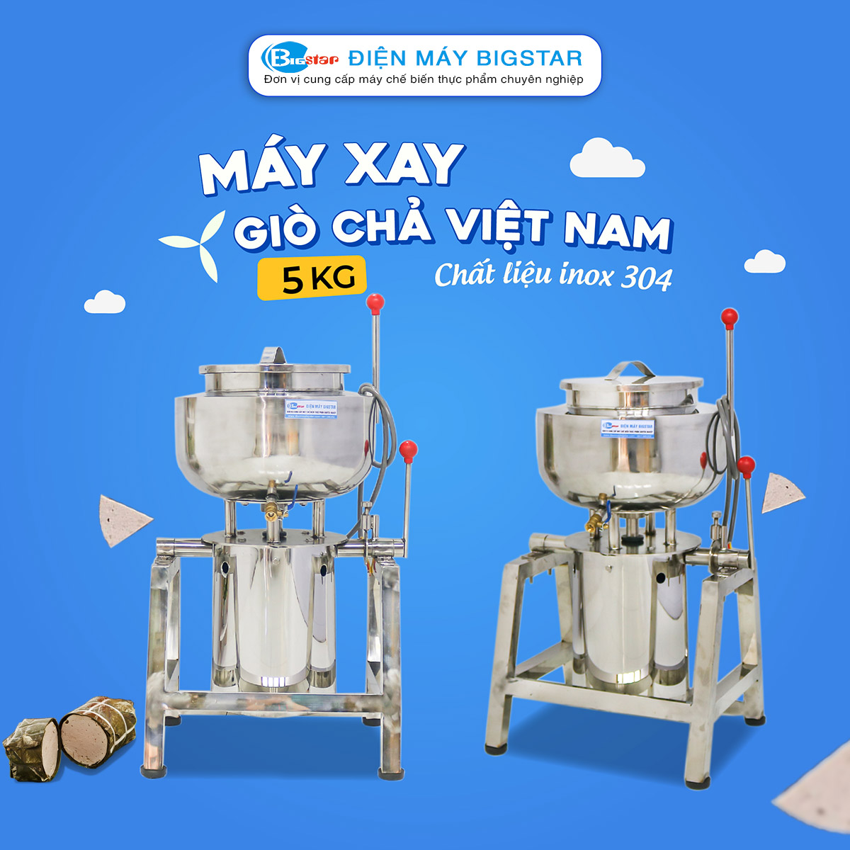 Máy xay chả lụa 5kg là dòng sản phẩm có thiết kế nhỏ nhất trong các dòng máy xay chả lụa công nghiệp. Máy sử dụng công nghệ biến tần, phù hợp với những hộ kinh doanh, cơ sở sản xuất giò chả vừa và lớn, năng suất lên đến hàng trăm kg thịt/ngày.